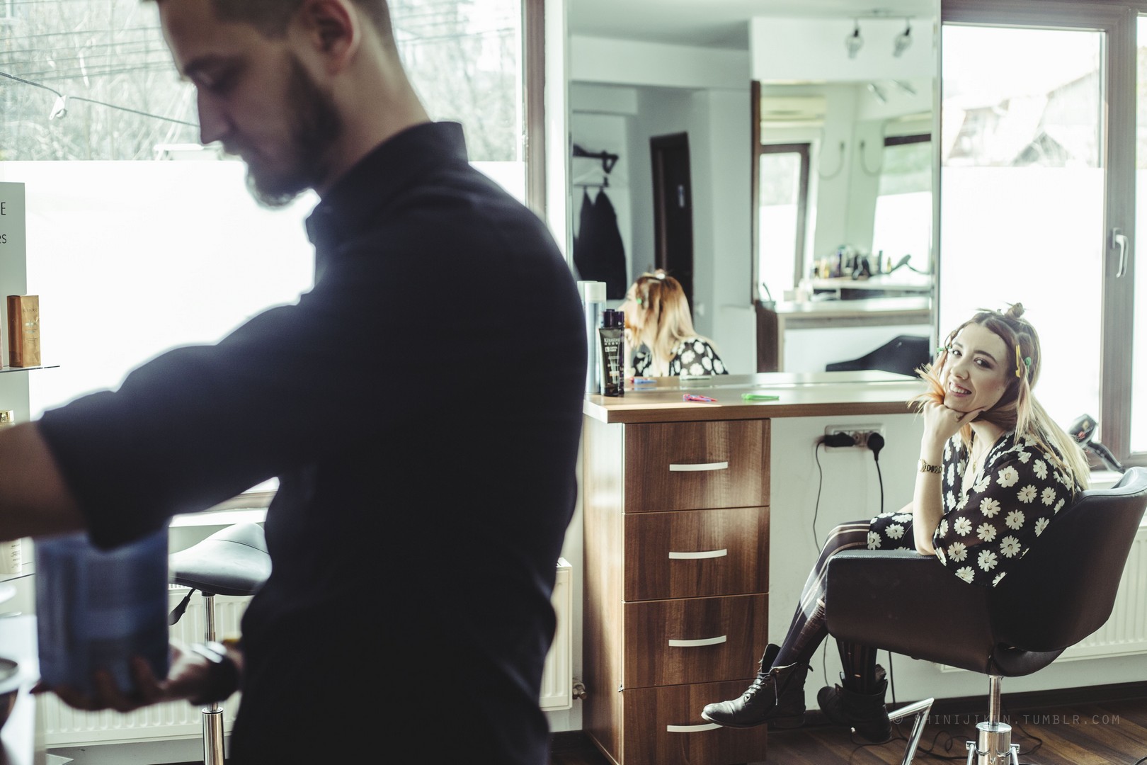 La 18 ani, când am luat prima dată contact cu un coafor, cu atmosfera.