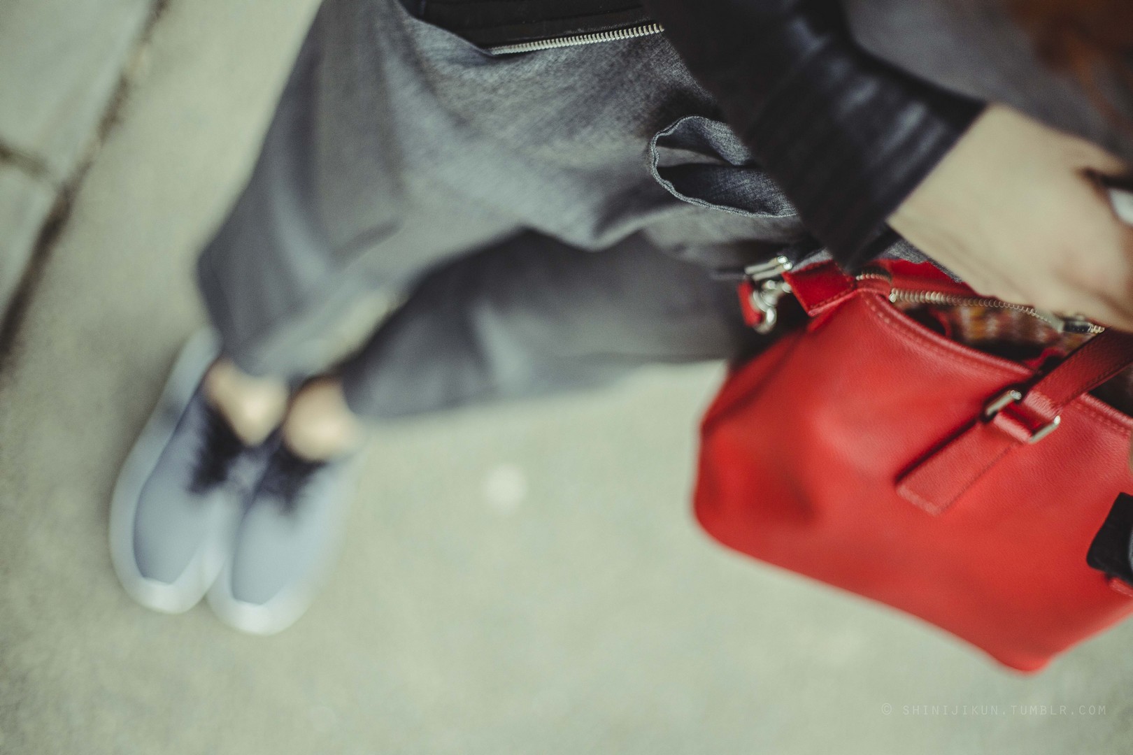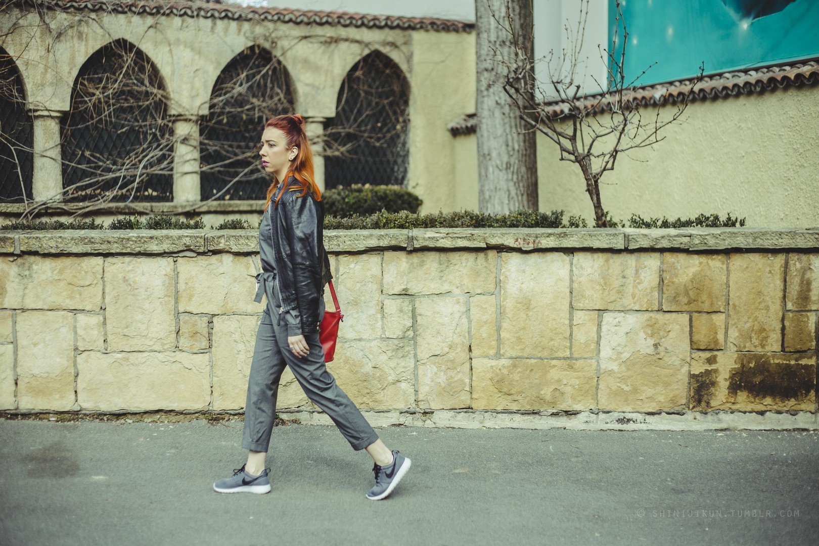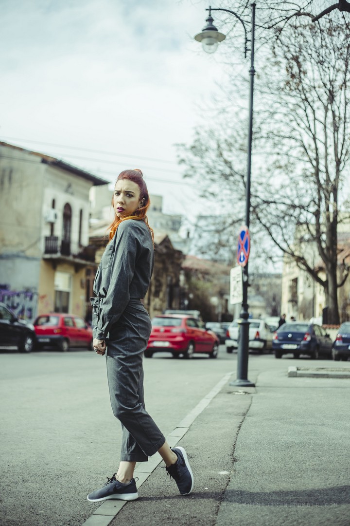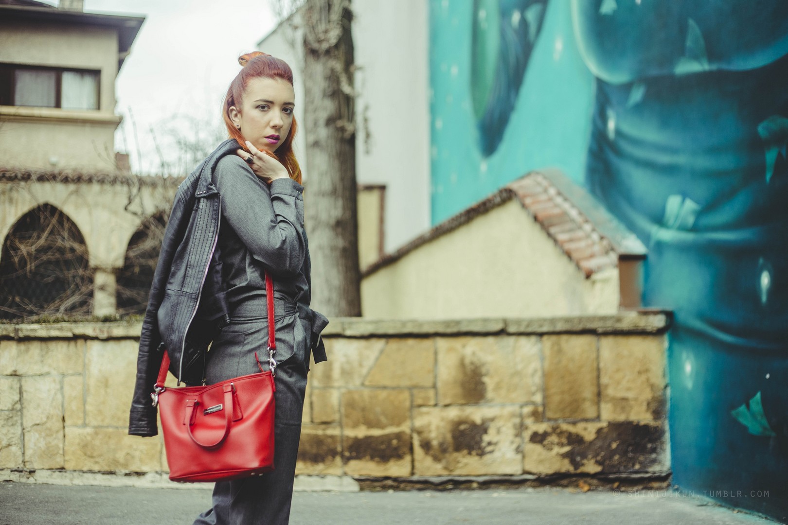 Pentru astazi eu am ales sa port o salopeta gri foarte comoda, alaturi de o pereche de air max-uri, geaca de piele si o geanta din piele rosie Tommy Hilfiger. Trendul tinde spre combinarea stilurilor smart, chic, casual, chiar elegant cu adidasi, spre obtinerea unui vibe super relaxat.